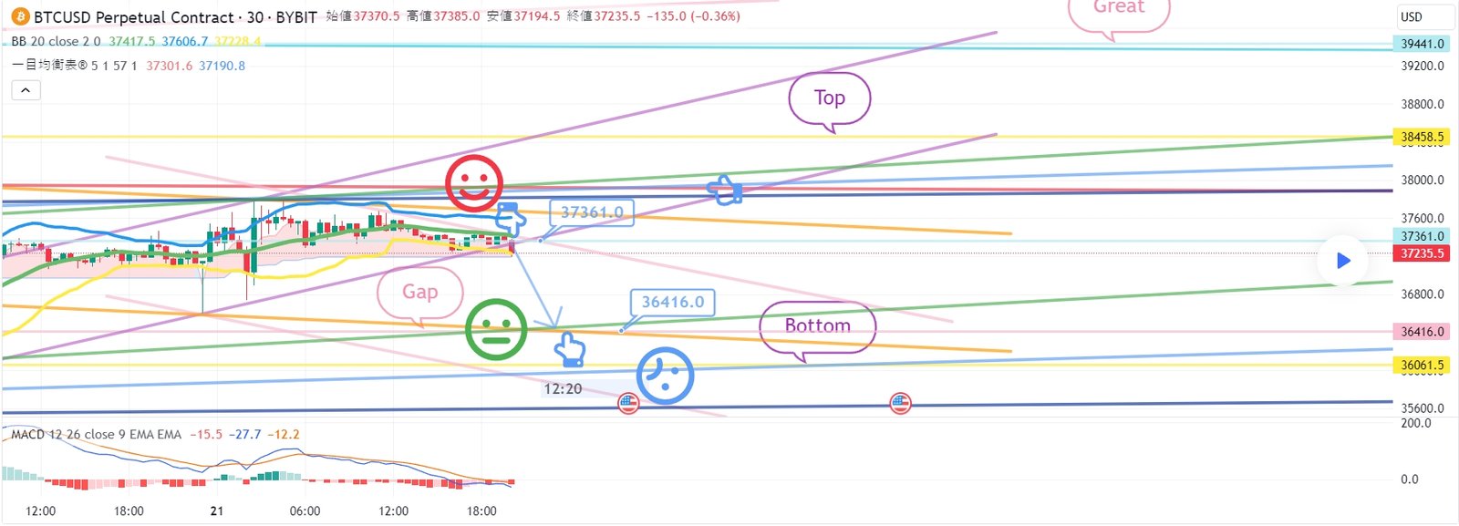 1. 37361火ショートポジション入口区間 / オレンジ色抵抗線突破時手節街