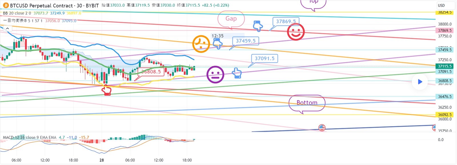 1. 37459.5火ショートポジション進入区間 / オレンジ抵抗線突破時手節街