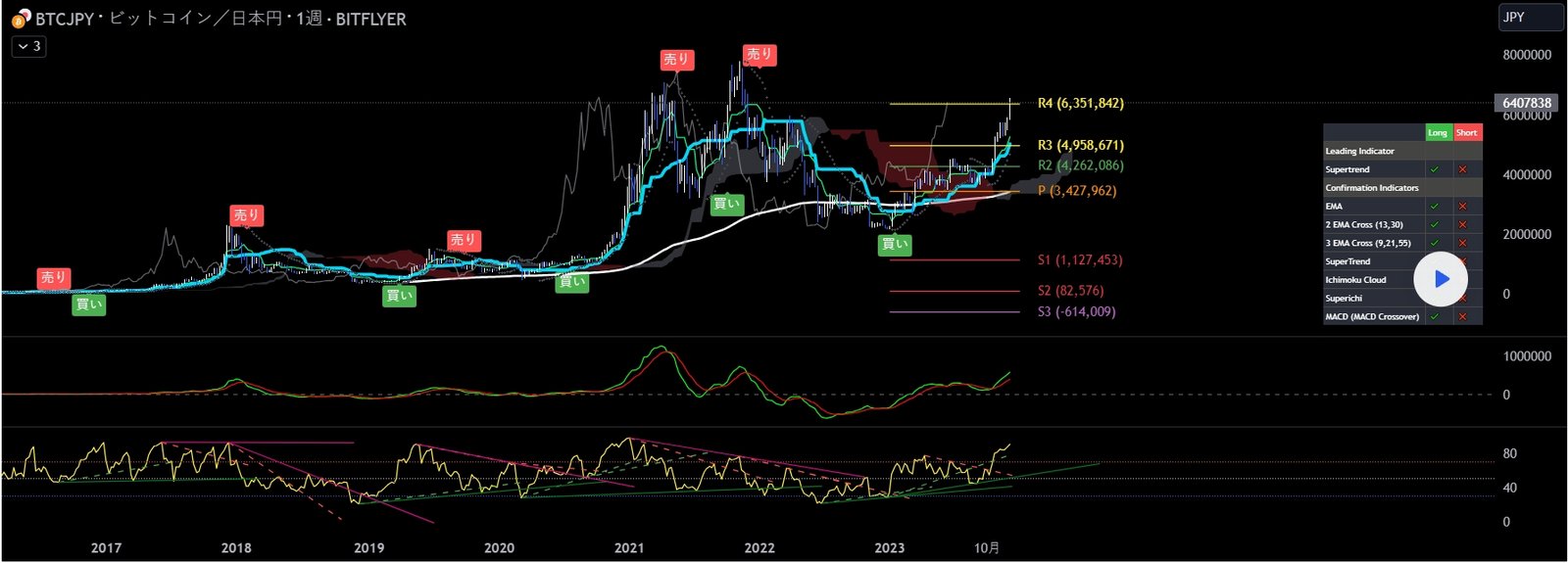 週足 PIVOT◎ ichimoku◎ MACD◎ RSI◎ 上昇トレンド