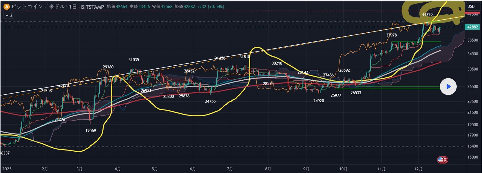 大まかな目線の当てにはなったので、この半年はとにかく下がったら積み上げた