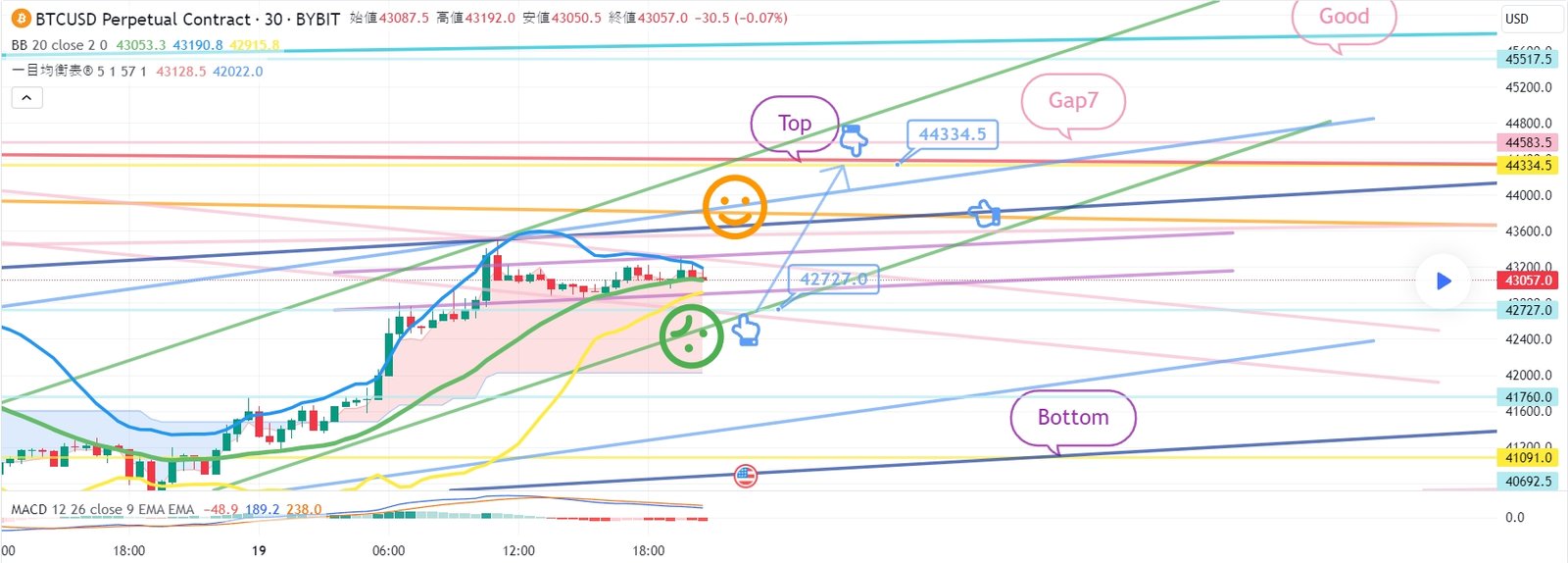 2. Top区間 44334.5火 ロングポジション 1次ターゲット -> Gap7 44583.5火 2次ターゲット