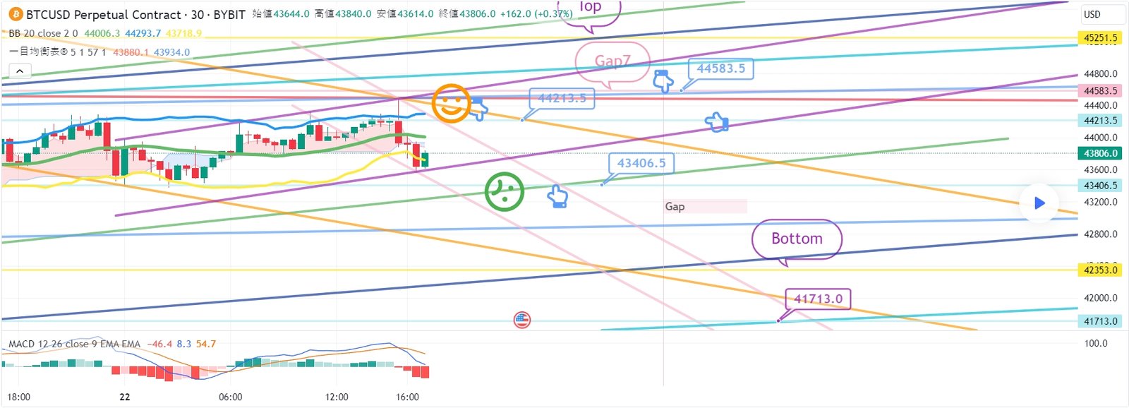1. 44213.5火ショートポジション進入区間 / オレンジ抵抗線突破時手節街