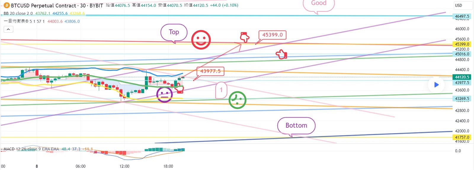 下部に赤い指43977.5火ロングポジション追撃枚数以降