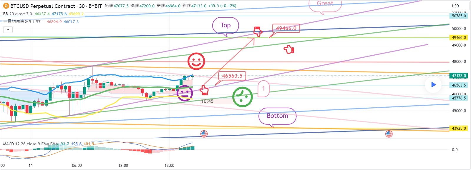 2. Top区間 49466火 ロングポジション 1次ターゲット -> Great 2次ターゲット