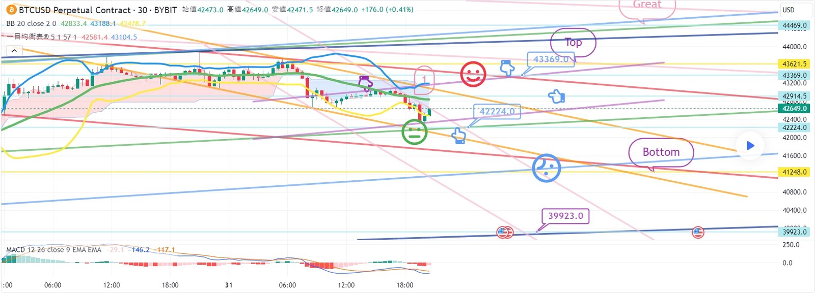 緑色の支持線離脱時下段にBottom ->最大39923火まで