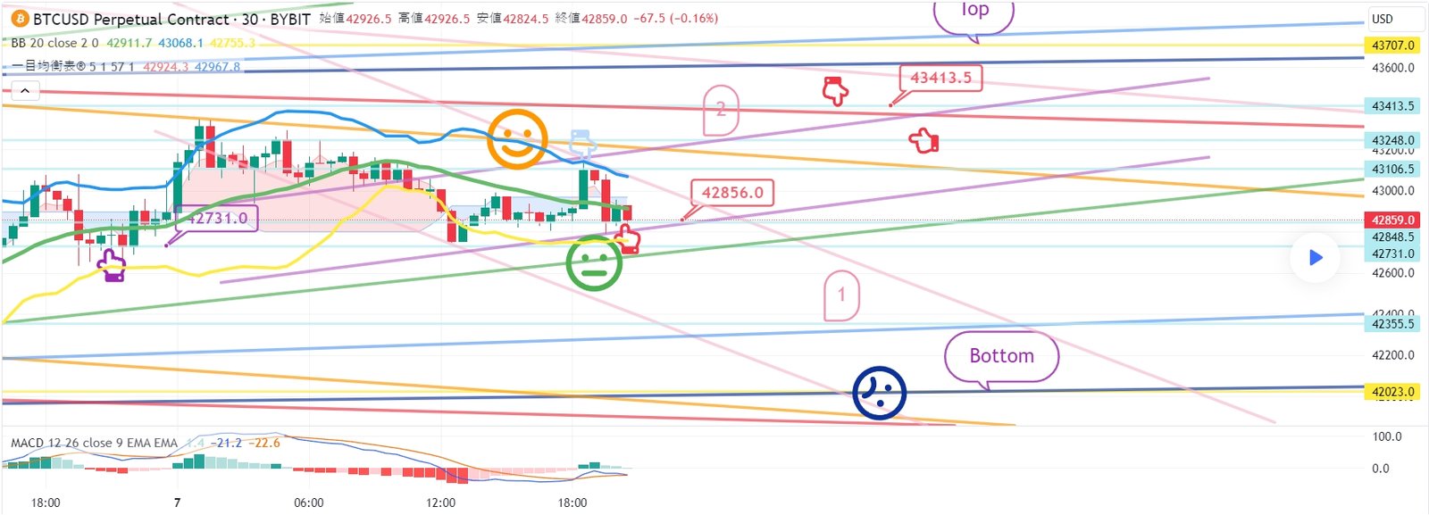 2. 43413.5ブルロングポジション1次ターゲット -> Top区間2次ターゲット