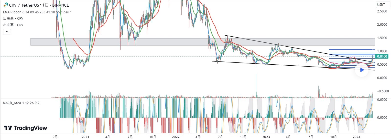 したがって、まずはダブルボトムのTP価格1.06程度をターゲットとします。