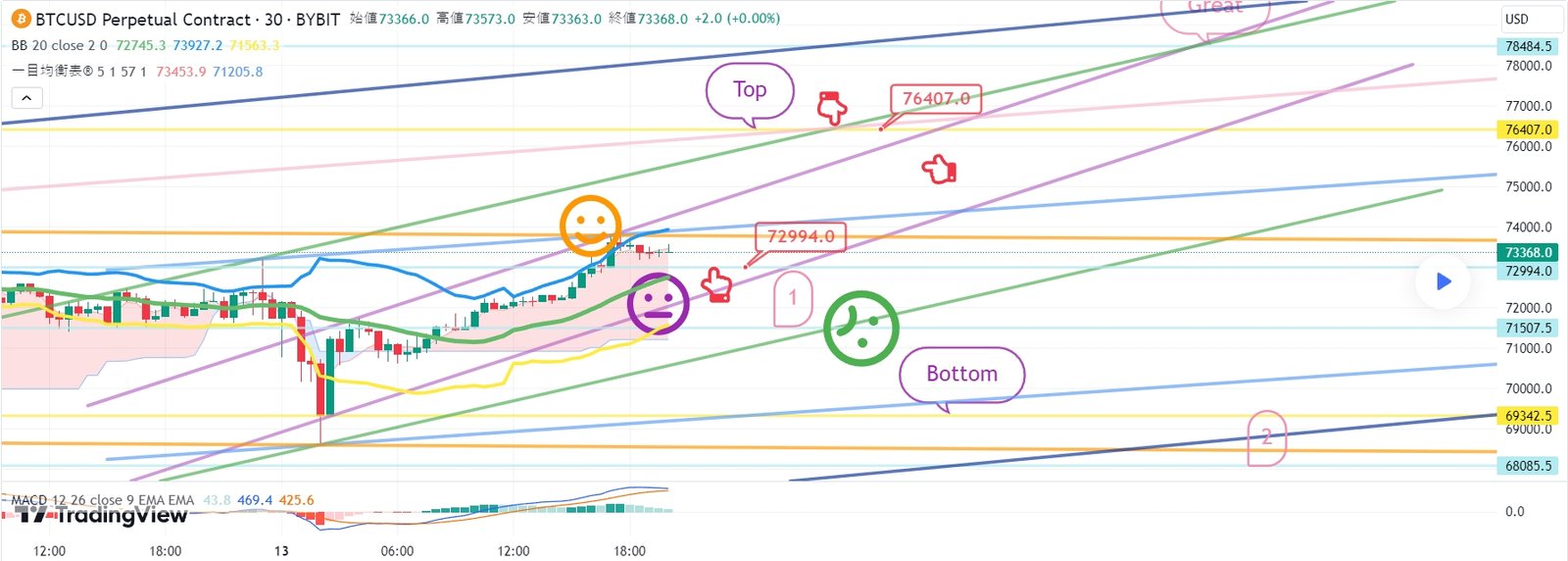 進行中の12時間チャートMACDデッドクロスは無視されます。