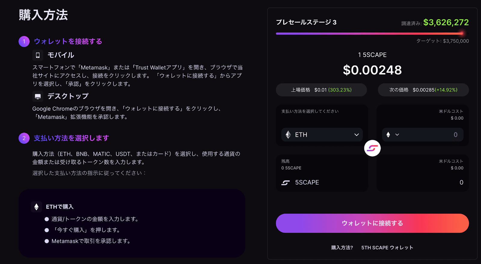 5th Scapeプロジェクトは、VRとWeb3の力を組み合わせることで、私たちの体験する世界に新たな次元をもたらします。この画期的なプラットフォームは、仮想現実の枠を超え、教育、エンターテインメント、ビジネスコミュニケーションといった多様な分野において、没入型の体験を提供することを目指しています。5SCAPEトークンを中心に展開されるエコシステムは、ユーザー参加とデジタル資産の価値を再定義し、ブロックチェーン技術の可能性を最大限に引き出します。暗号通貨市場の最新動向と共に、5th Scapeは、デジタルとリアルが融合する新しいライフスタイルの先駆者として位置づけられています。このプロジェクトへの参加は、ただの体験を超え、未来のデジタル社会を共に形成していく貴重な機会です。開発者、クリエイター、技術愛好家、そして冒険を求めるすべての人々にとって、5th Scapeは新しい可能性の扉を開きます。
