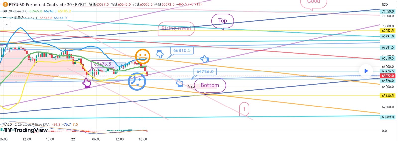 BTCUSD 3月22日 ビットコインBybitチャート分析です
