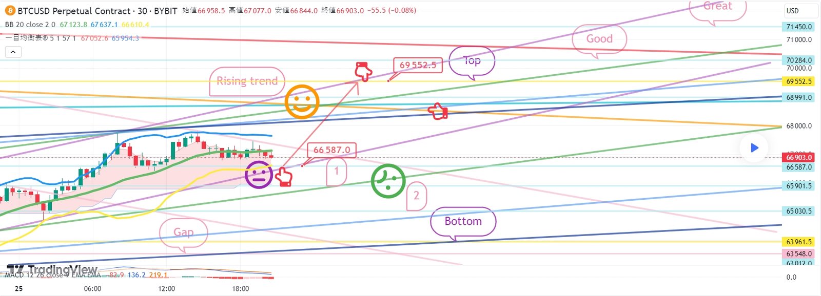 2. 69552.5ブルロングポジション1次ターゲット -> Good 2次ターゲット