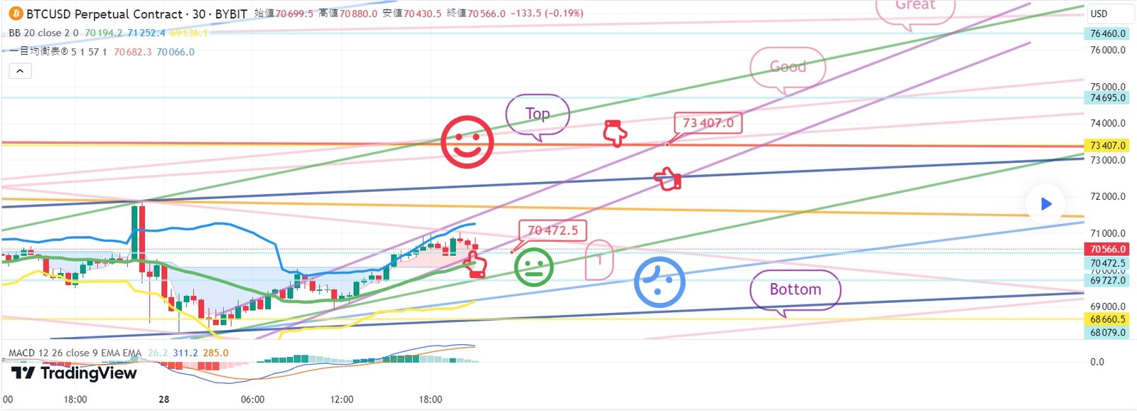 2. 73407ブルロングポジション1次ターゲット -> Good 2次ターゲット -> Great 3次ターゲット
