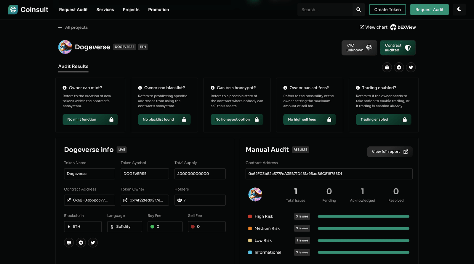 Dogeverseのプレセールは、非常に短い時間で目標金額を達成し、多くの投資家や市場の注目を集めました。この成功は、Dogeverseが提供する独自の価値と市場での需要が高いことを示しています。プレセールで調達された資金は、プロジェクトのさらなる開発と拡張に向けて使用される予定で、これによりDogeverseはさまざまなブロックチェーン間でシームレスに機能するようになります。監査情報