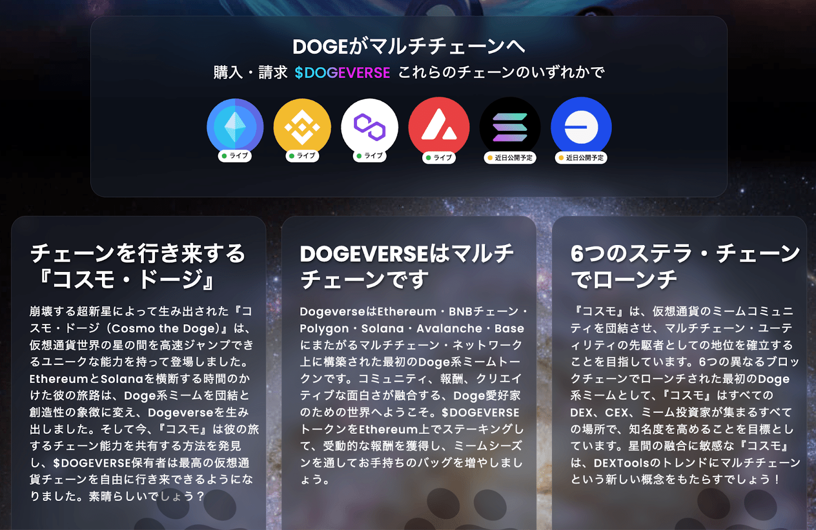 Dogeverseは、そのユニークなマルチチェーン対応と市場での迅速な動きにより、仮想通貨界に新たな風を吹き込んでいます。プロジェクトの成功は、技術的な革新だけでなく、強力なコミュニティサポートと戦略的な市場展開によってもたらされています。今後もDogeverseは、革新的なアプローチと持続可能な成長戦略を維持することで、仮想通貨市場の発展に貢献し続けるでしょう。このプロジェクトが市場にどのような新しい動きをもたらすか、引き続き注目が集まることは間違いありません。