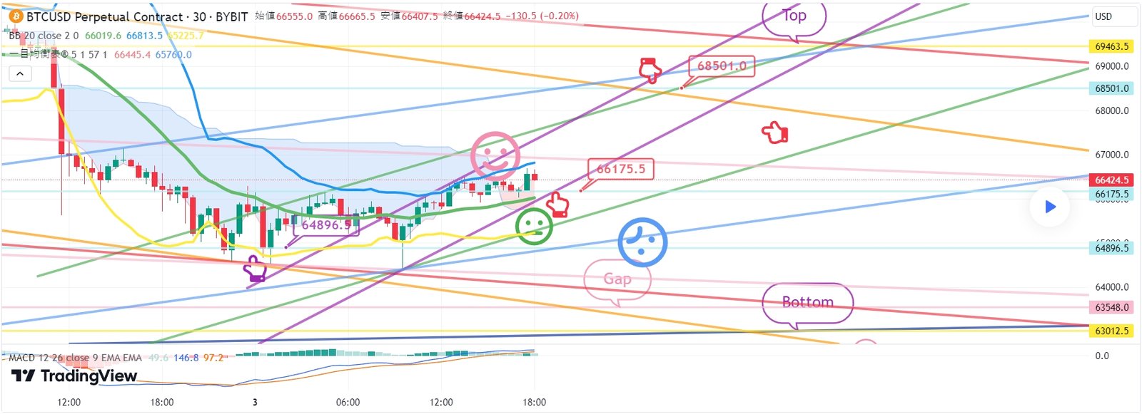 2. 68501火 ロングポジション 1次ターゲット -> Top 2次ターゲット