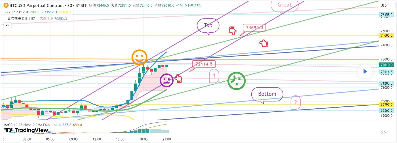2. 上部にトップ74695火1次ターゲット -> Great 2次ターゲット