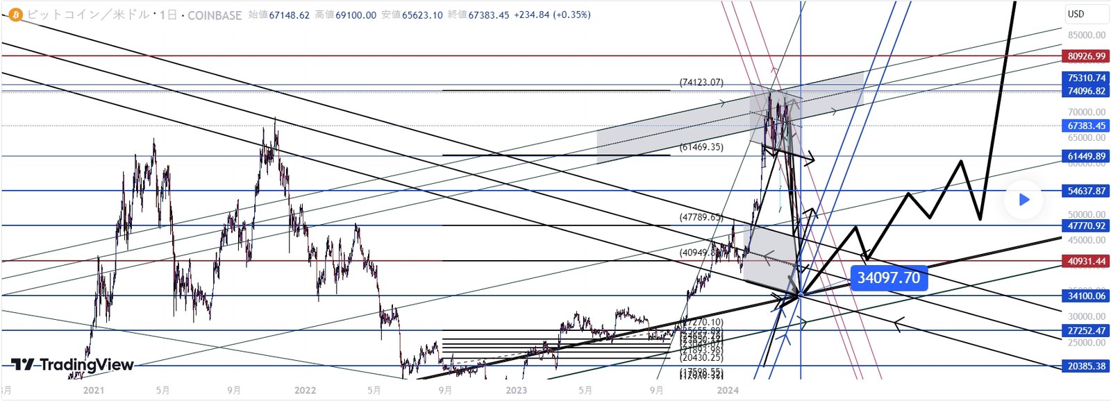結構な角度で落ちそう。34000!?そんなところまで?落ちたら買いたいと思ってる人が多いと思うけど、とにかく反転確認からの買いをお勧めです。いずれにしても時間軸を考えても買うのは年末から春先にかけてで十分だと思う。