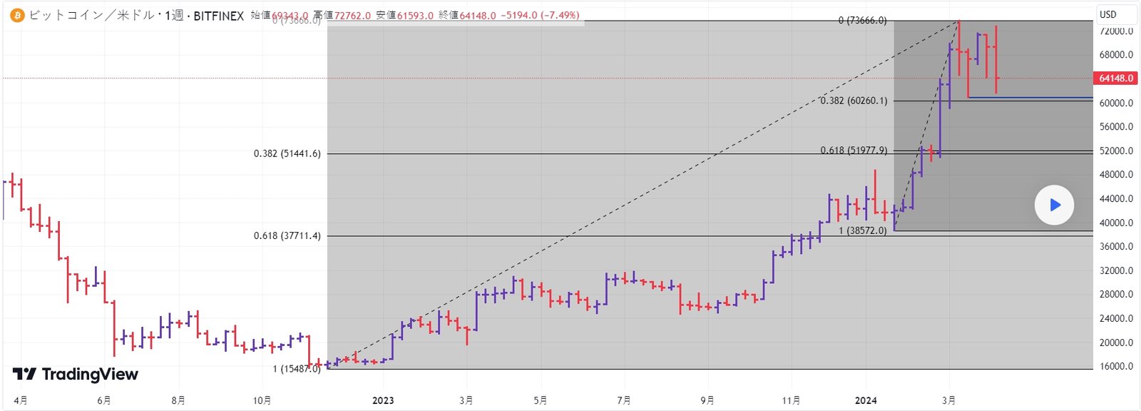 3月18日の週につけた安値、60,870を割ってしまうと、