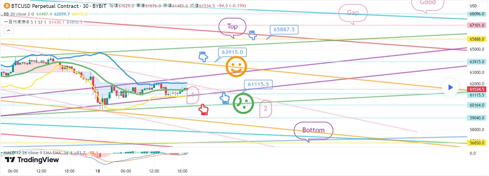 BTCUSD 4月18日ビットコインBybitチャート分析です
