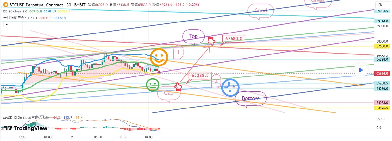 BTCUSD 4月23日ビットコインBybitチャート分析です