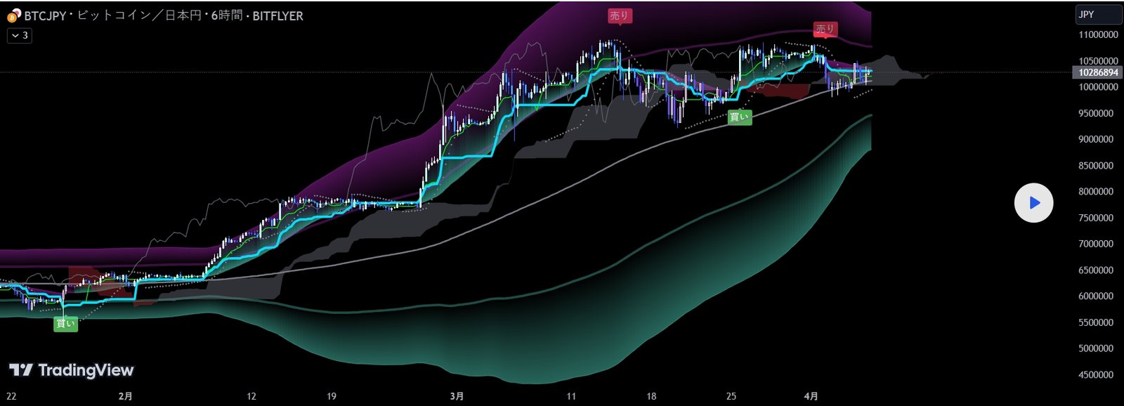 BTCJPY 2週間雲ネジレ 10月21日 6時間足雲ネジレ 4月10日