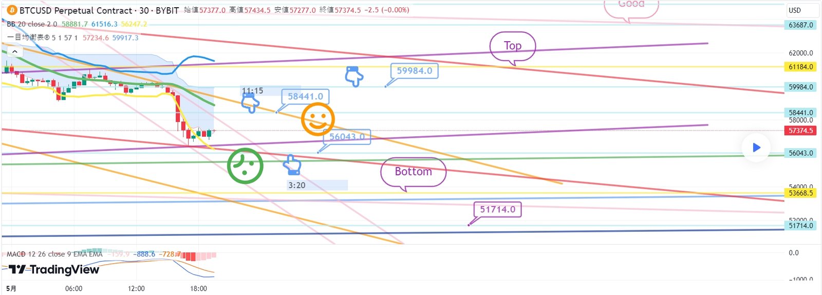 上部に59984ドルロングポジション1次ターゲット – > Top 2次ターゲット