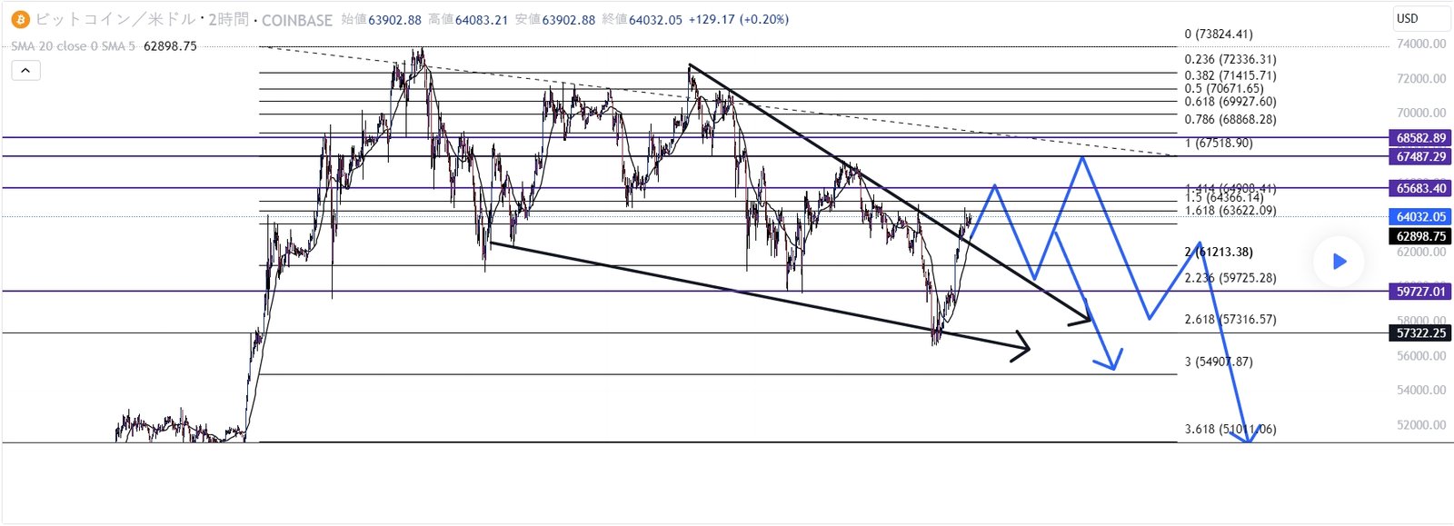 一応67500辺りが一番可能性高いのかな?と思っているので、そこからの反転確認でショートしていきたいと考え直しました。