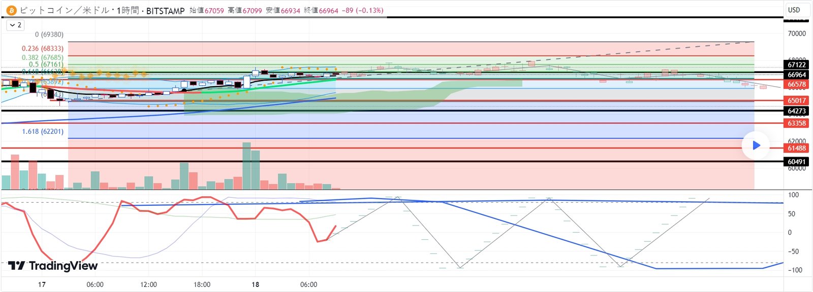 68333を上に抜けると、RC Iが上に張り付きながら上昇しそう