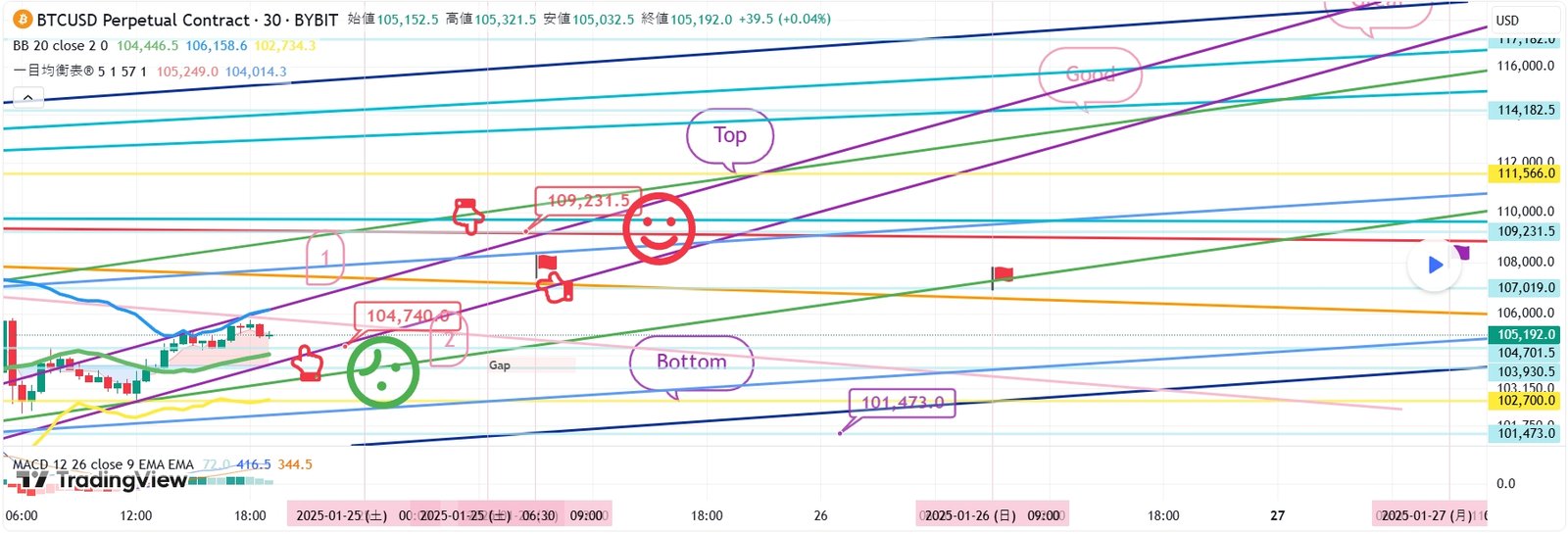 BTCUSD 1月24日ビットコインBybitチャート分析です