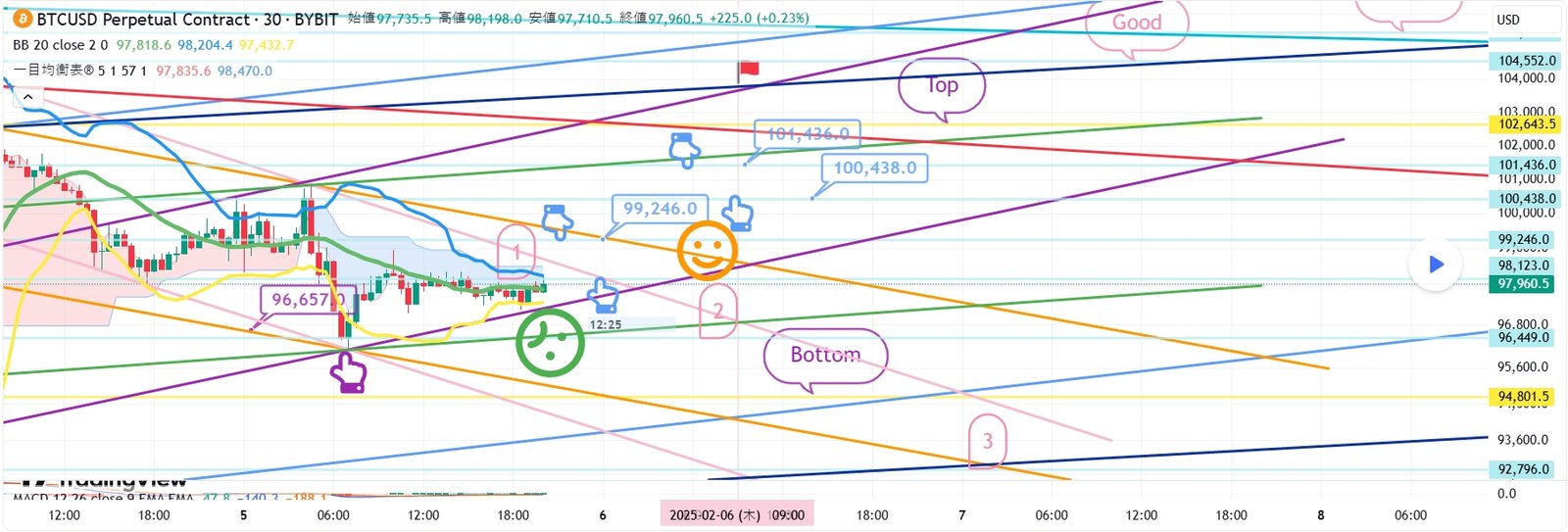 BTCUSD 2月5日ビットコインBybitチャート分析です