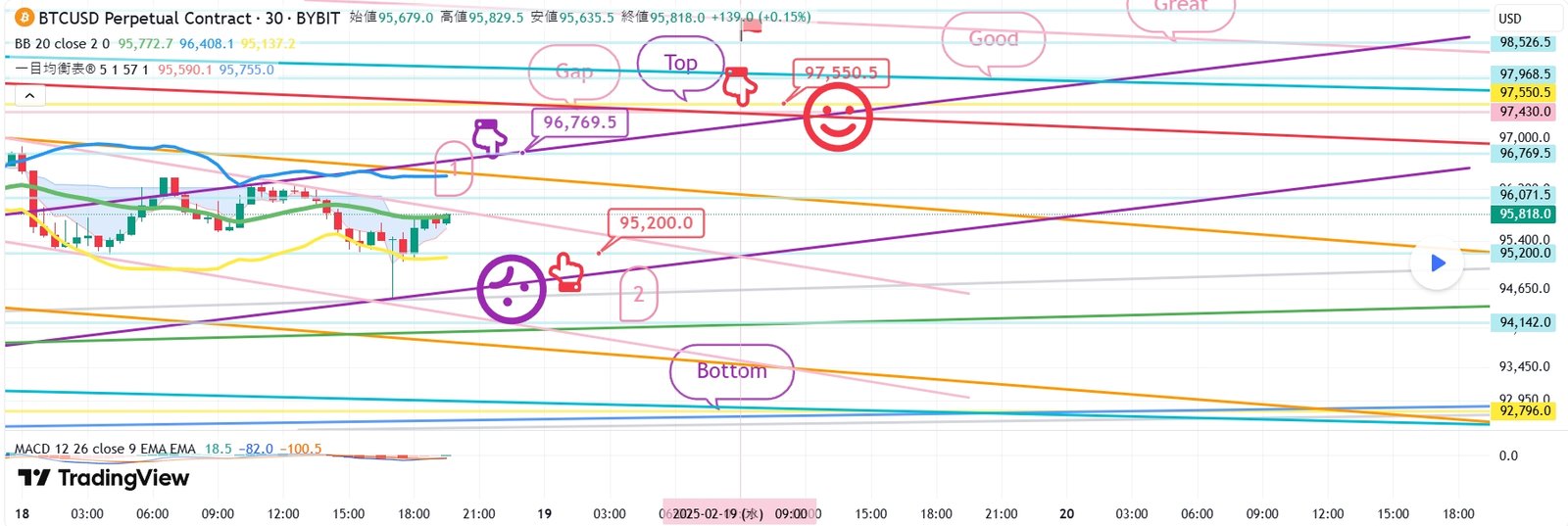 2. 97550.5ブルロングポジション1次ターゲット -> Good 2次ターゲット