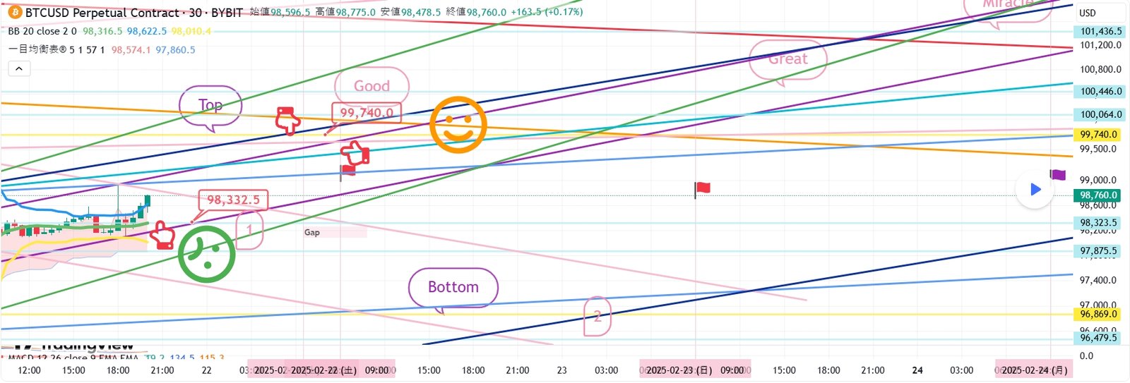 2. 99740ドル Top区間 ロングポジション 1次ターゲット -> Good 2次ターゲット