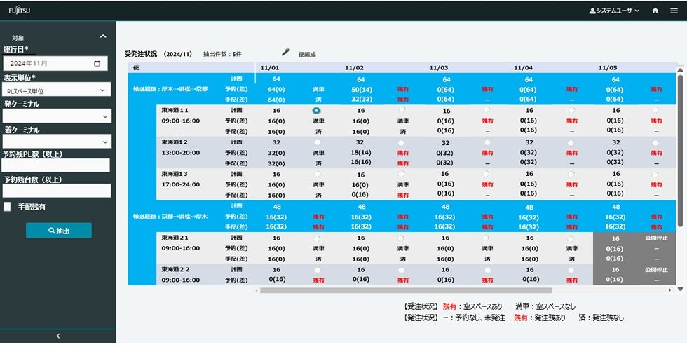 [共同輸配送システムの配車予約管理画面イメージ]