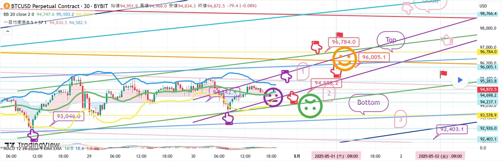 94.6K -> 2番区間 -> Bottom -> 3番区間まで強く押された後