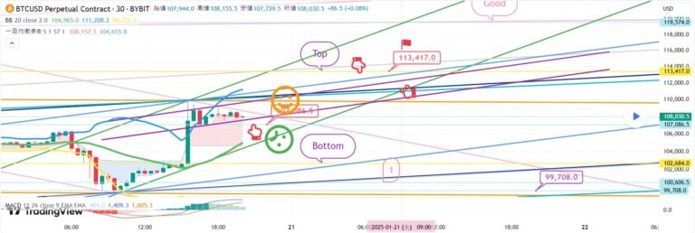 BTCUSD 1月20日ビットコインBybitチャート分析です