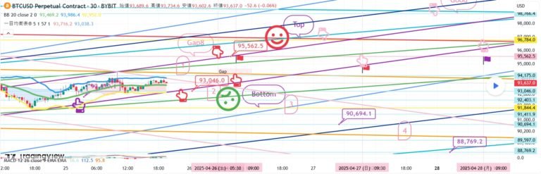 BTCUSD 4月25日ビットコインBybitチャート分析です